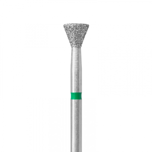 Алмазная фреза 876.104.010.040.050 изготовлена на Казанском заводе медицинских изделий «Кристалл» (г.Казань). Форма – пламя обратноконусная, насечка – зелёная, грубая, абразивная поверхность состоит из 100% - ных калиброванных алмазных кристаллов. Фреза предназначена для nail-мастеров и подологов. Изготовлена из высококачественной нержавеющей стали, не подвержена коррозии. Фреза проста и надежна в эксплуатации и поддается любым видам стерилизации и дезинфекции. Индивидуально упакована в блистер.